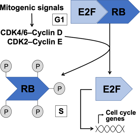 Genetic testing shows a mutation in the RB1 gene, which encodes the retinoblastoma protein (pRb), a key regulator ofthe G1/S checkpoint in the cell cycle