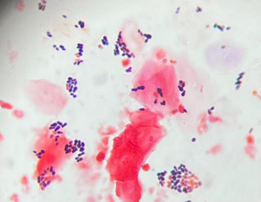 Clinical application: histology of canine with pneumonia, but can be in lungs (transtracheal aspirates), skin (exudates/aspirates), and brain (CSF)