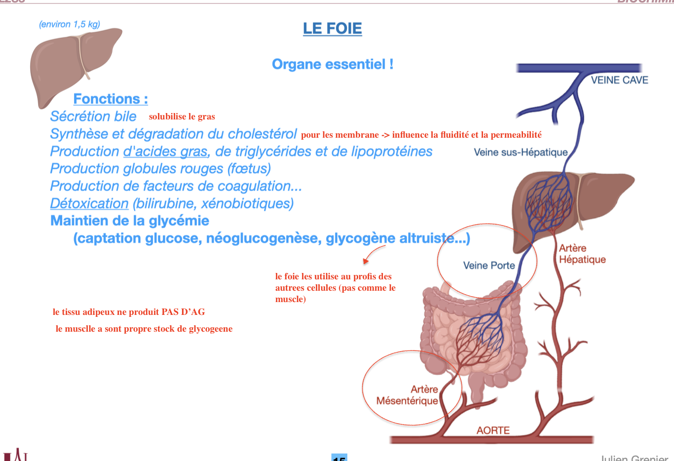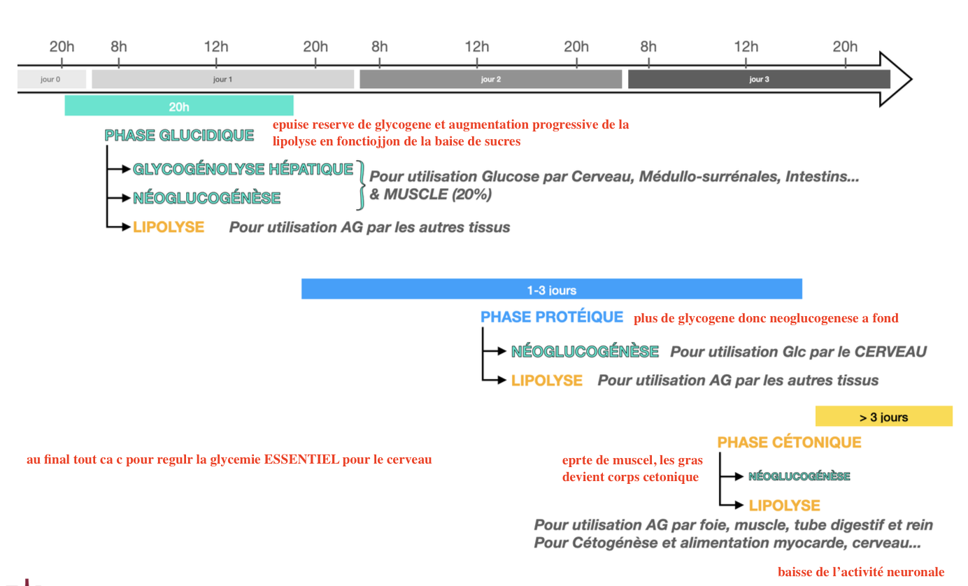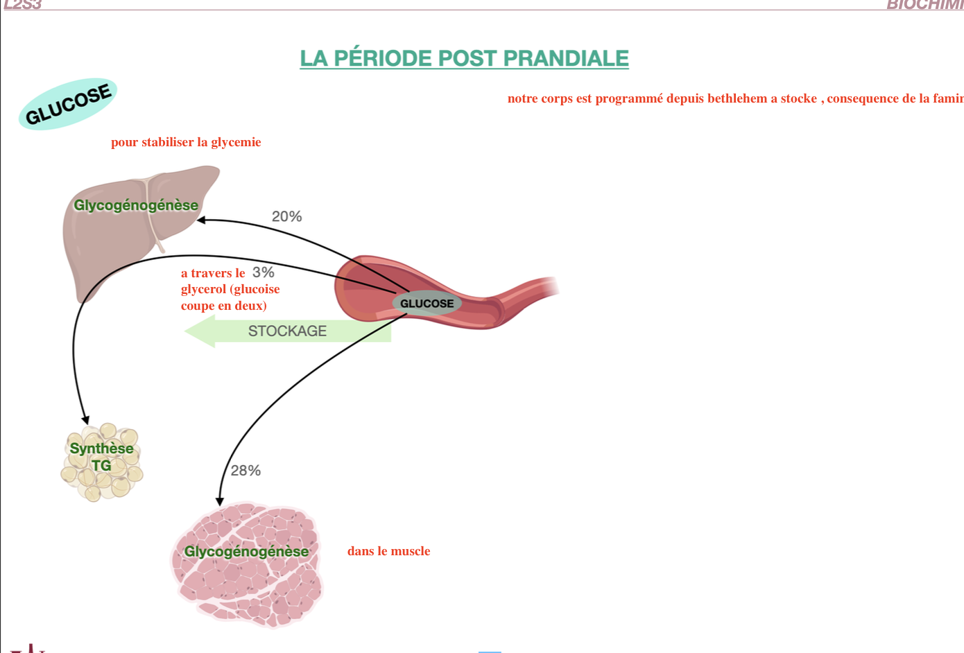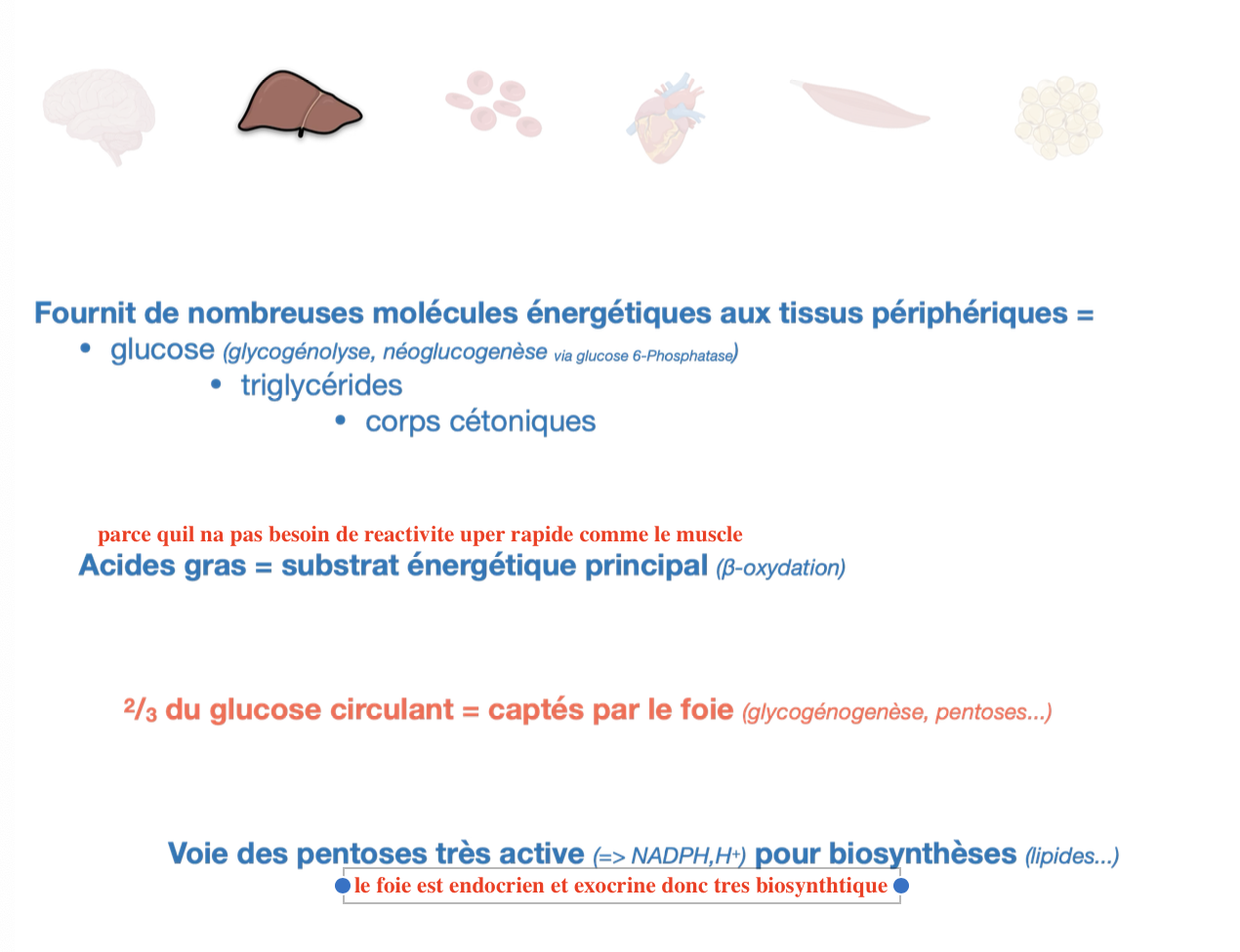 les sucres (glucoses) sont consommés uniquement par les muscle et le cerveau→ parce que ce sont les deux organes qui sont reactifs (fonctionnement TRES TRES RAPIDE (ex quand tu reveille en petard le matin)