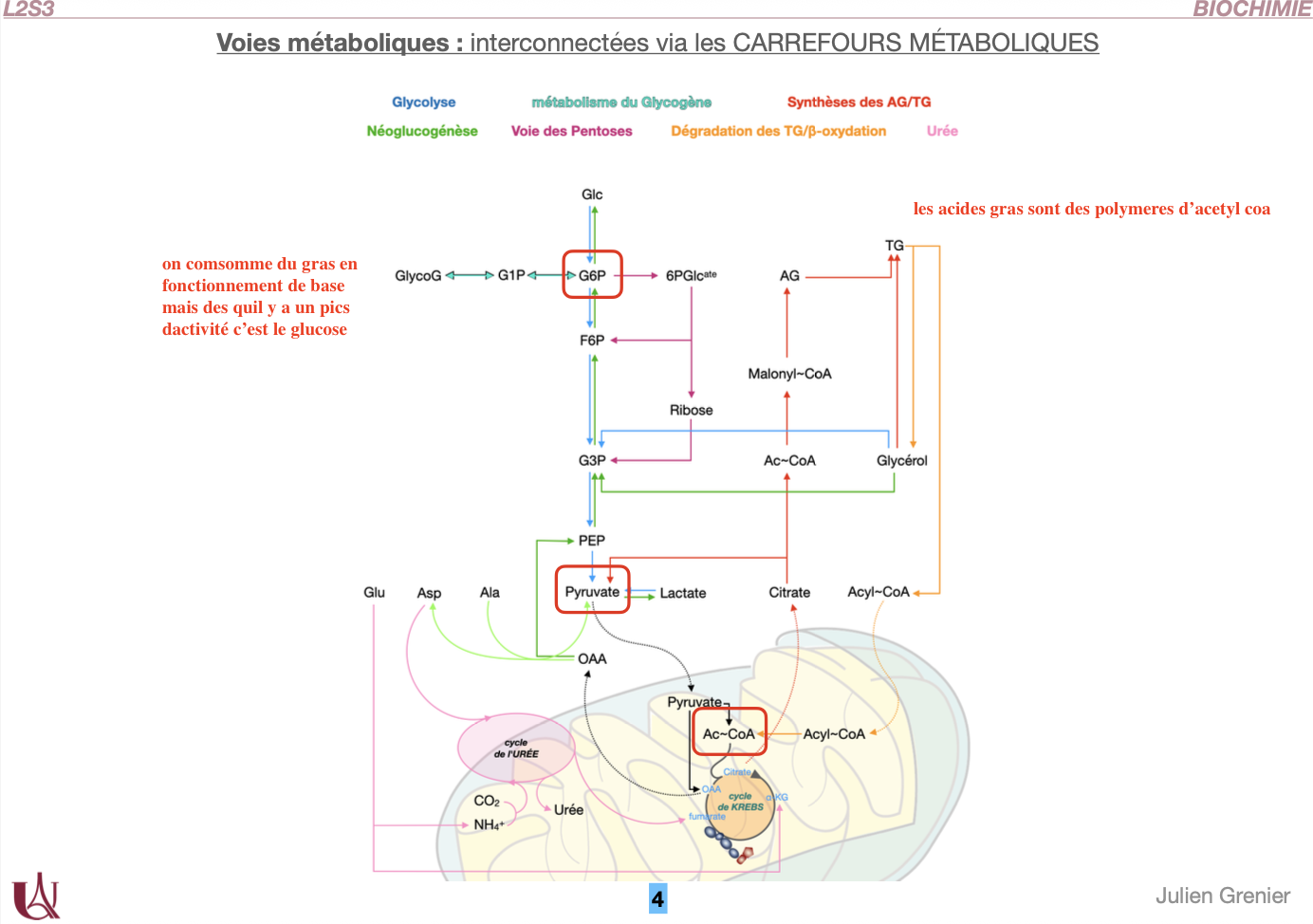 Quelles sont les deux issus apres la glycolyse? (néoglucogènèse ou voie des pentoses)