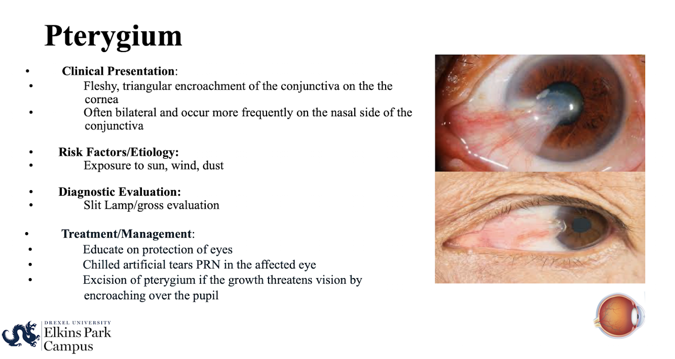 When is excision of a Pterygium indicated? What are the risk factors, diagnosis and treatment options?