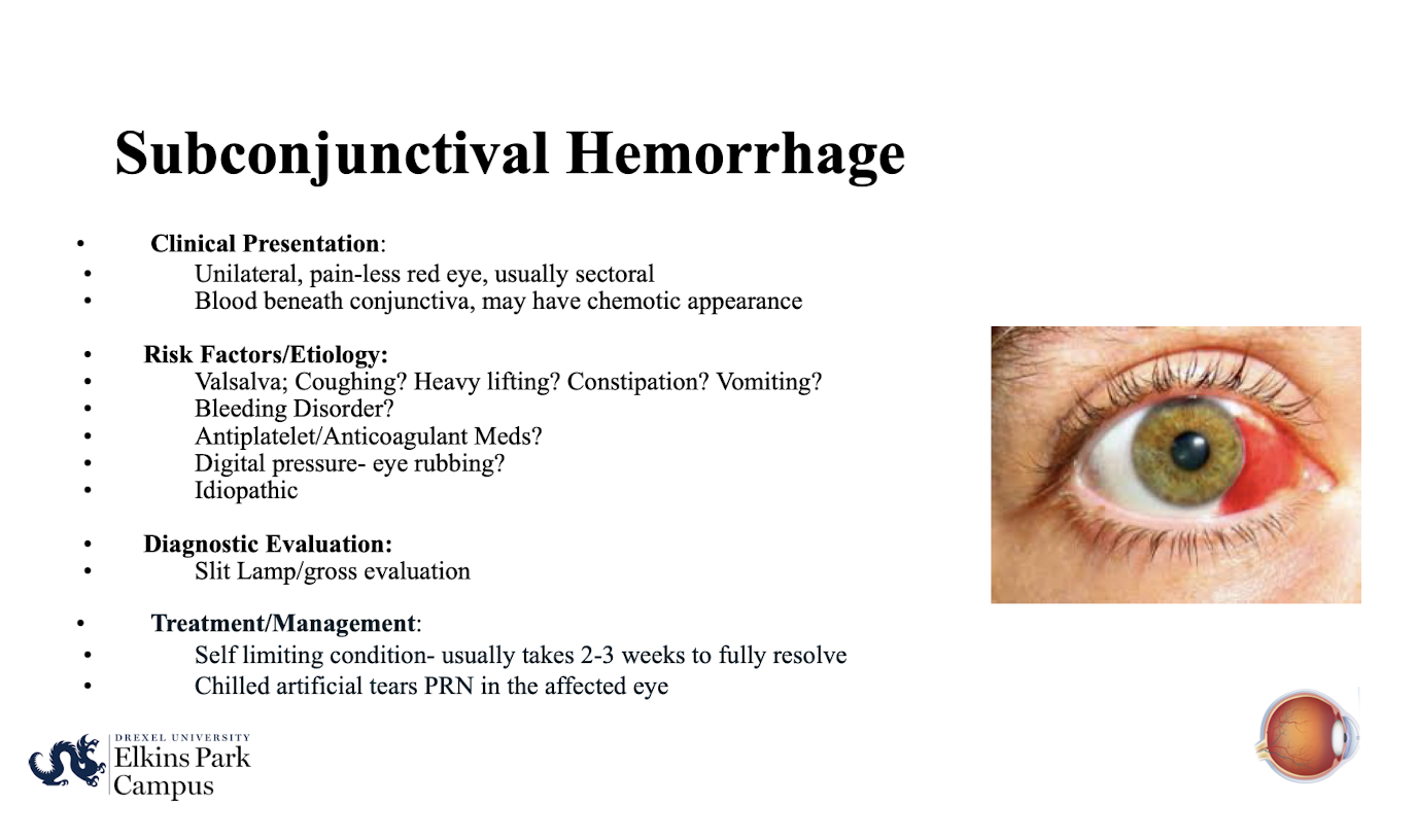 What medical conditions/factors should be ruled out in Subconjunctival Hemorrhage?