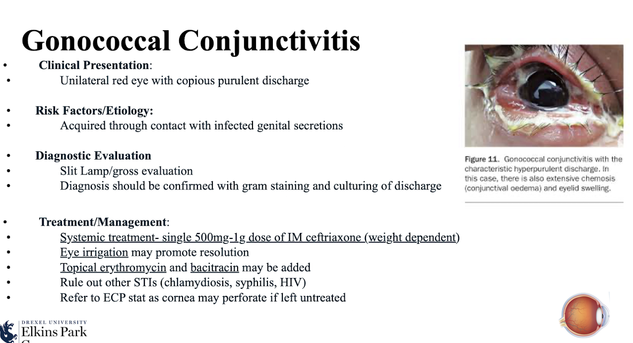 Why is emergent referral to an ECP necessary for gonococcal conjunctivitis?