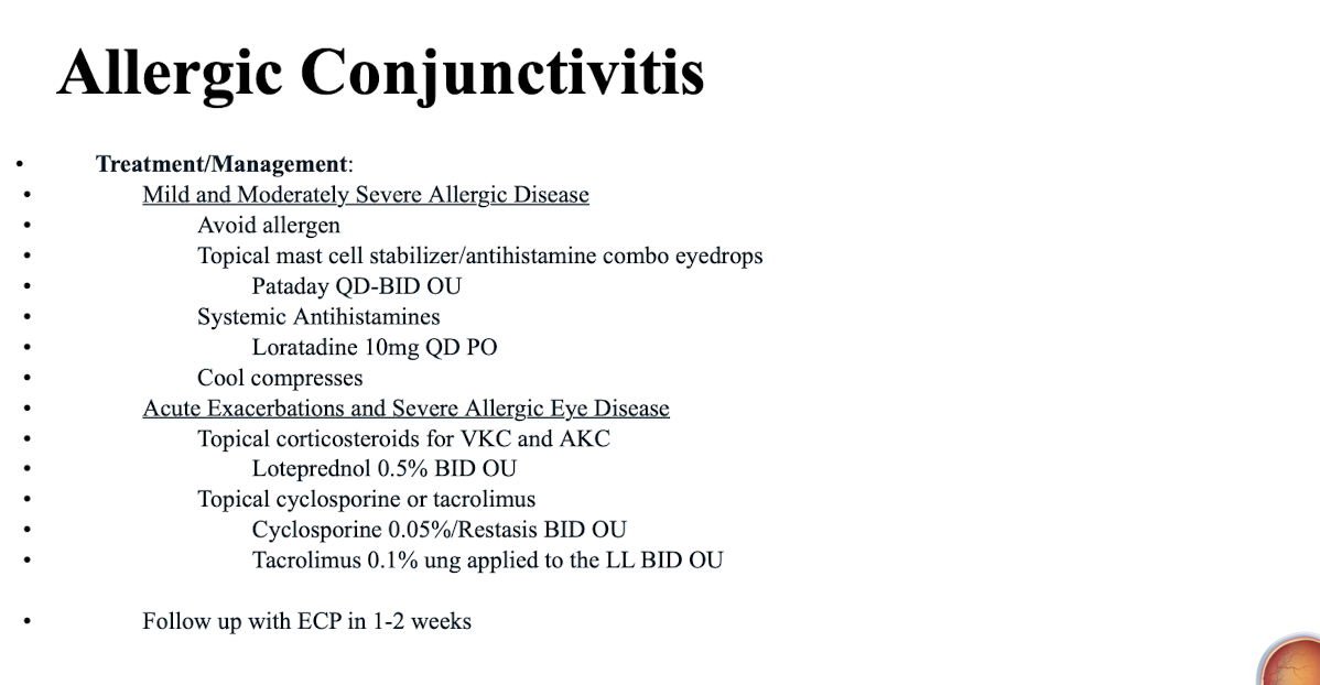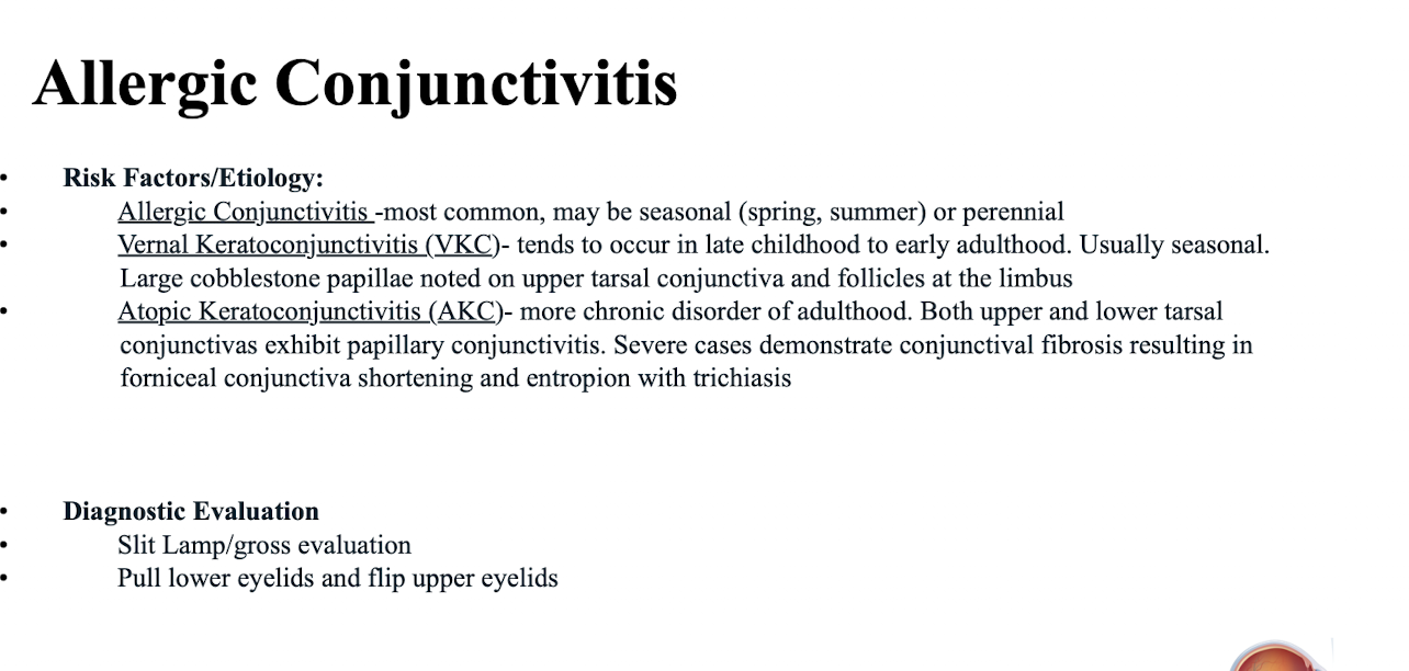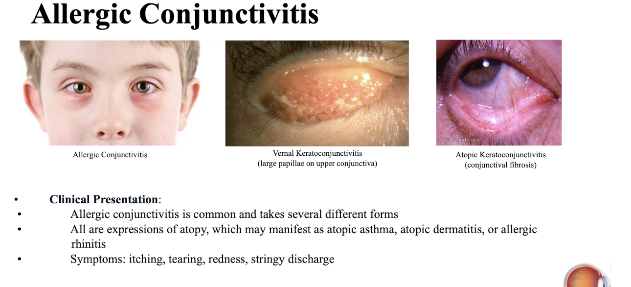 Allergic Conjunctivitis; Vernal Keratoconjunctivitis (large papillae on upper conjunctiva); Atopic Keratoconjunctivitis (conjunctival fibrosis)