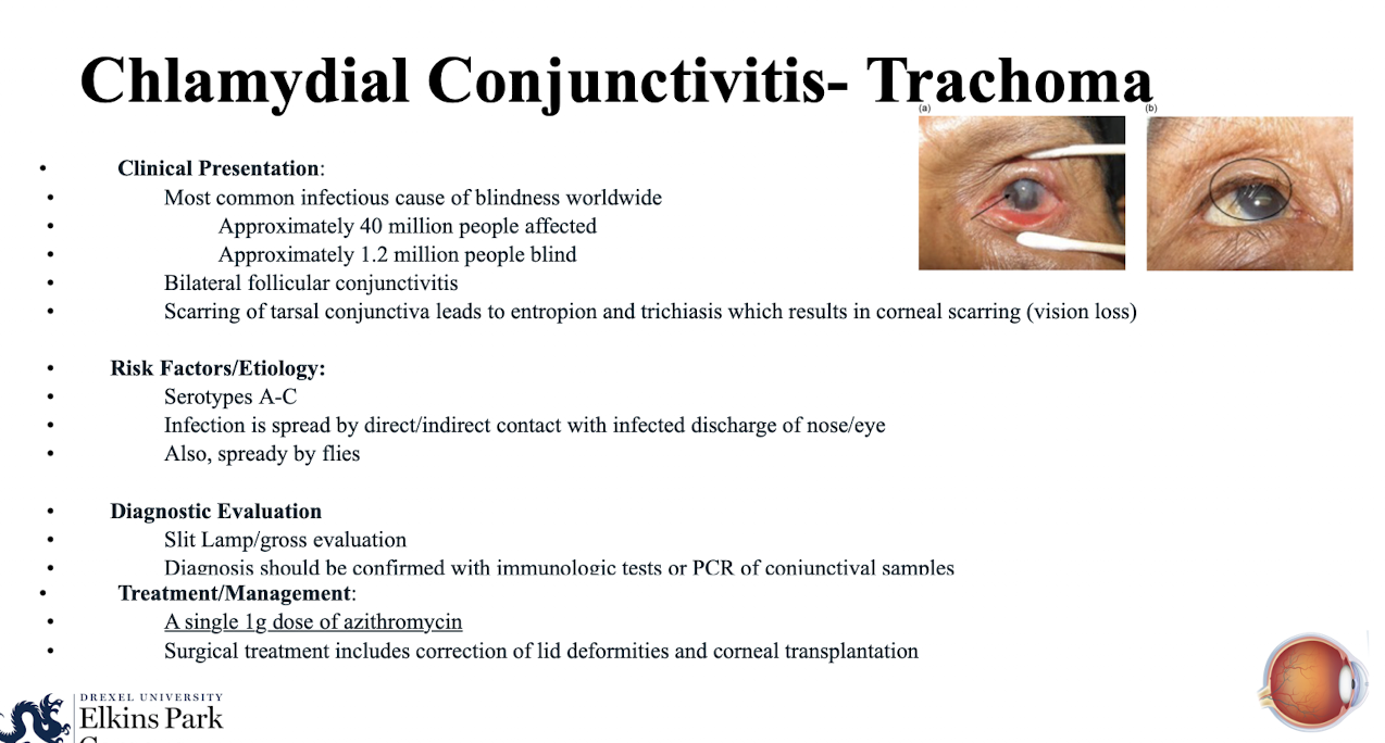 What type of Chlamydial Conjunctivitis is the most common infectious cause of blindness worldwide?