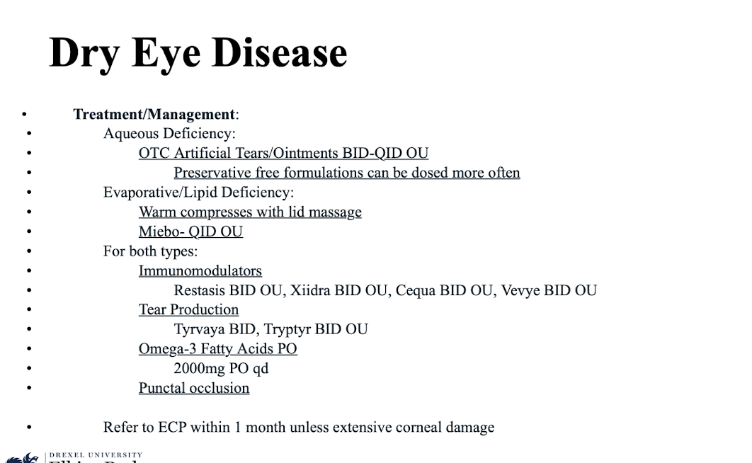 Restasis BID OU; Xiidra BID OU; Cequa BID OU; Vevye BID OU.
