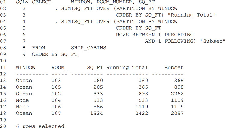 Running totals restart at the first row of each partition.