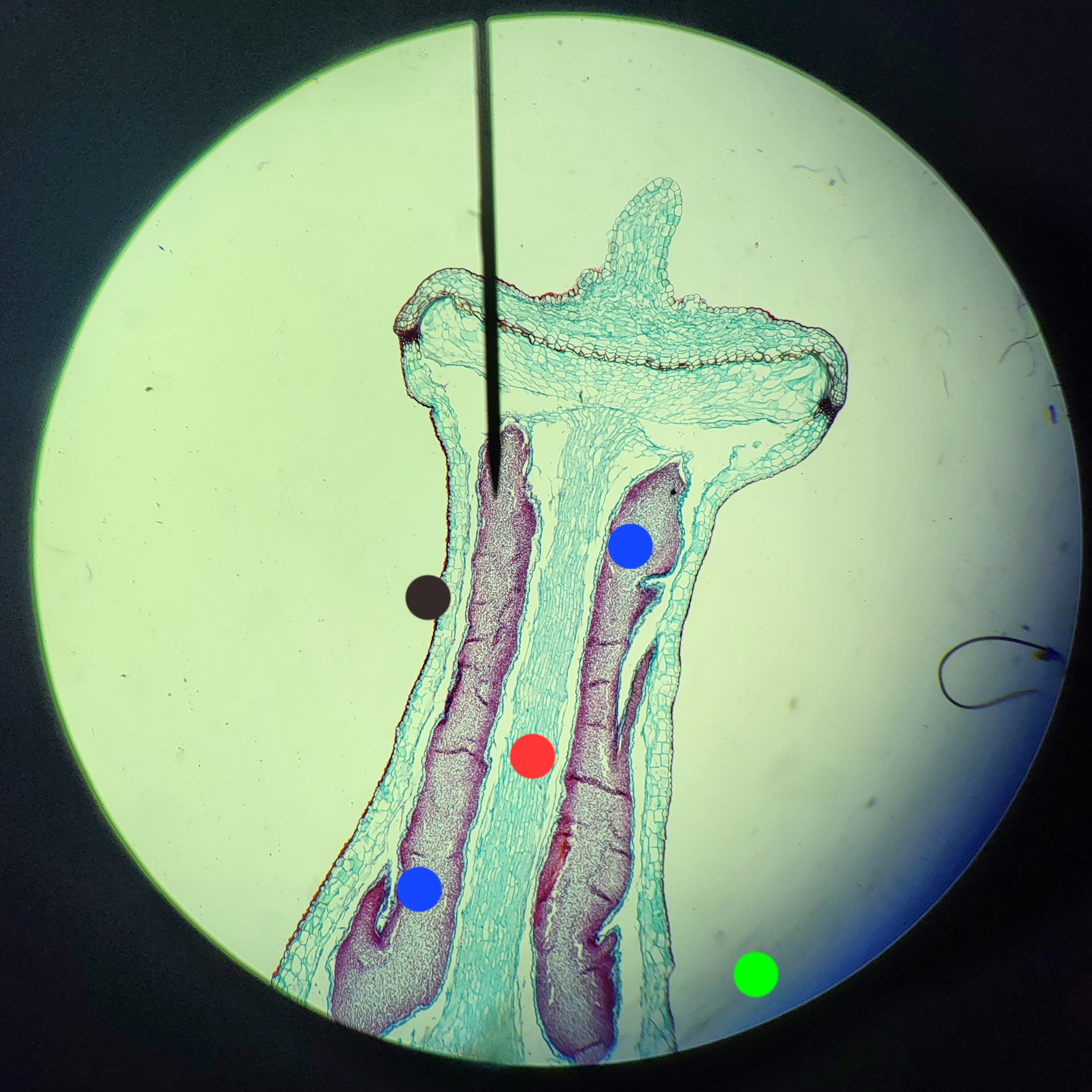 green: photosynthetic tissue is out of FOV but is above the seta near the bulge-y part