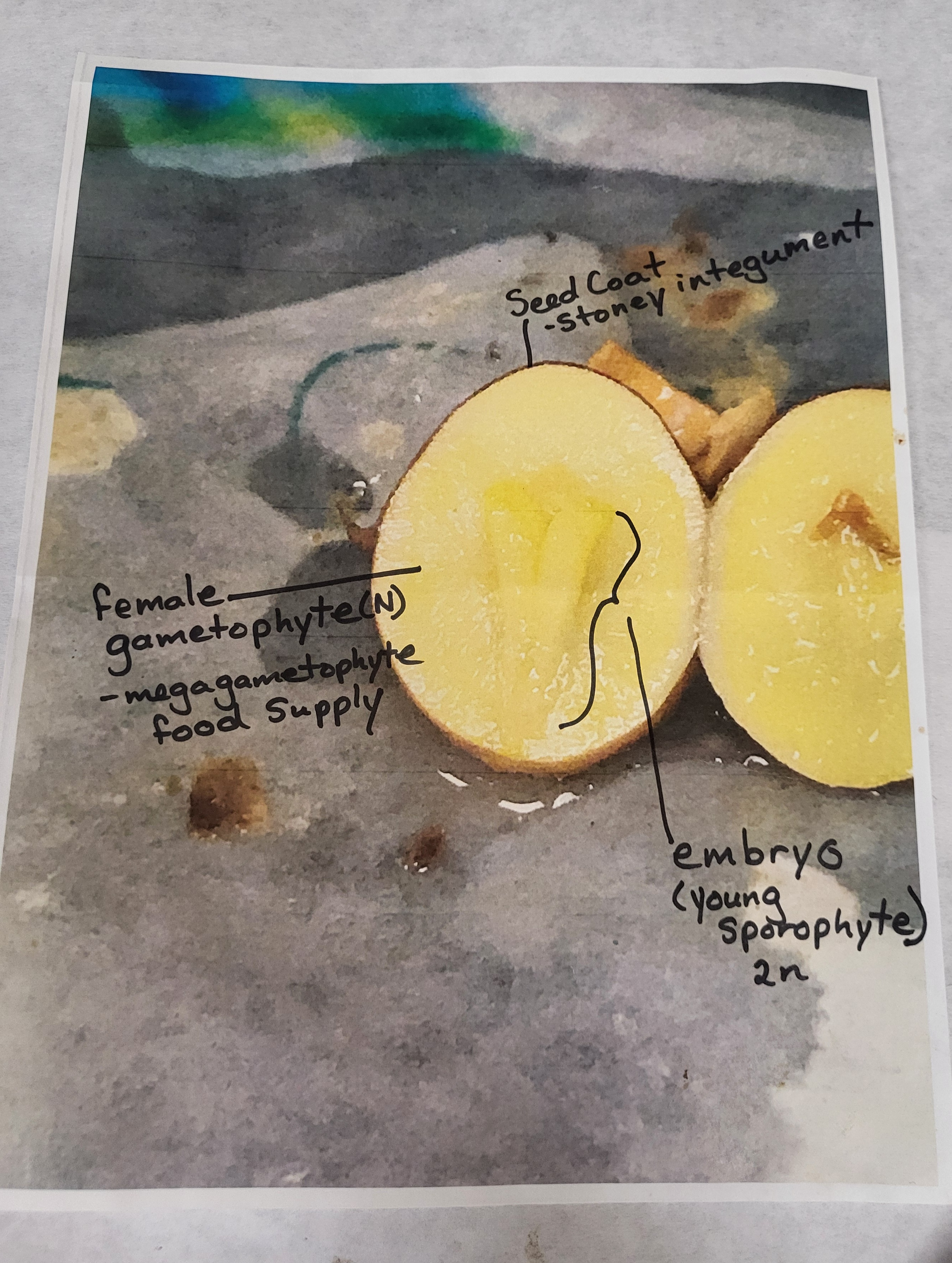 identify female gametophyte, embryo, seed coat