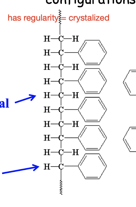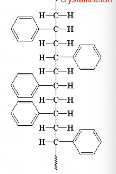 Bulky ring structures prohibit rotation, causing it to be stiff with high Tg and Tm
