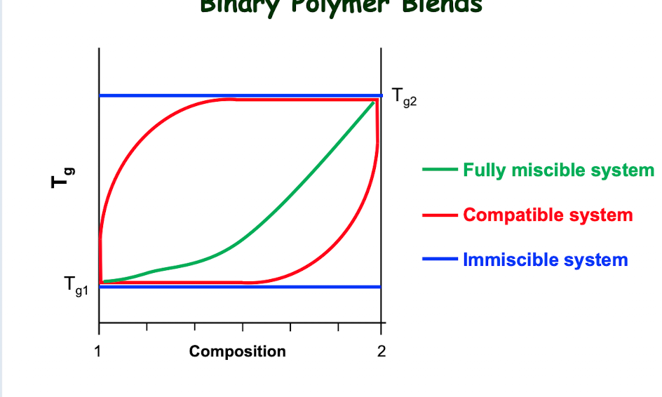Compatible: multiple Tg values are observed depending on the number of components and their fractions