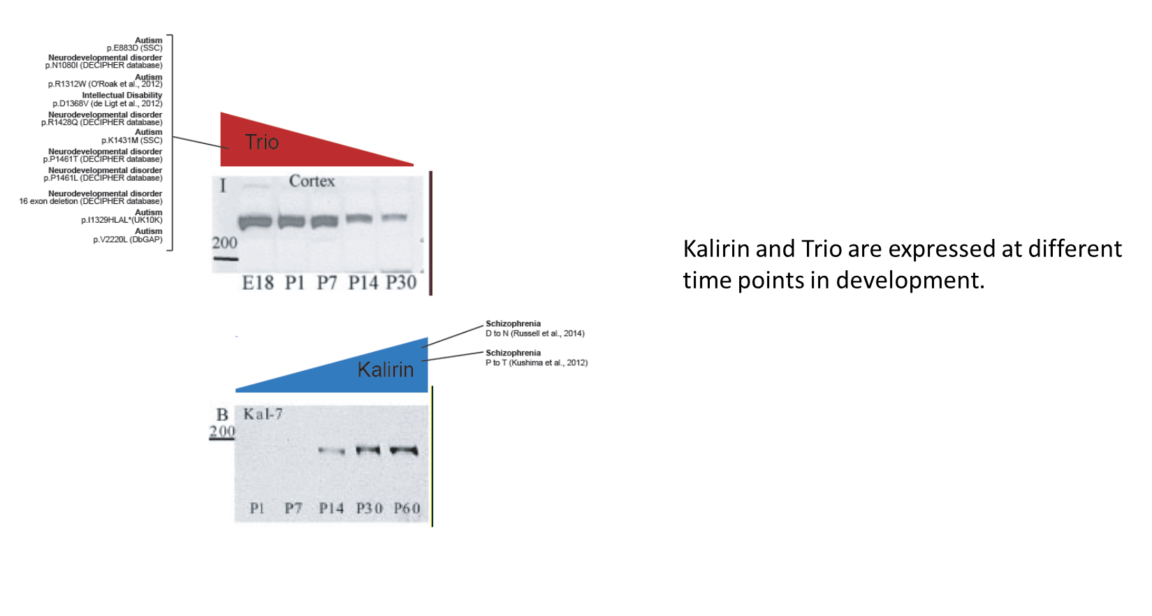 Trio and Kalirin are expressed at different time points in development so no ASD related mutations are in Kalirin.