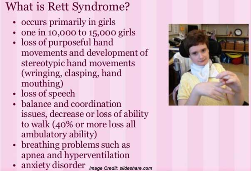 Caused by mutations in the MeCP2 gene which is also on the X-chromosome.