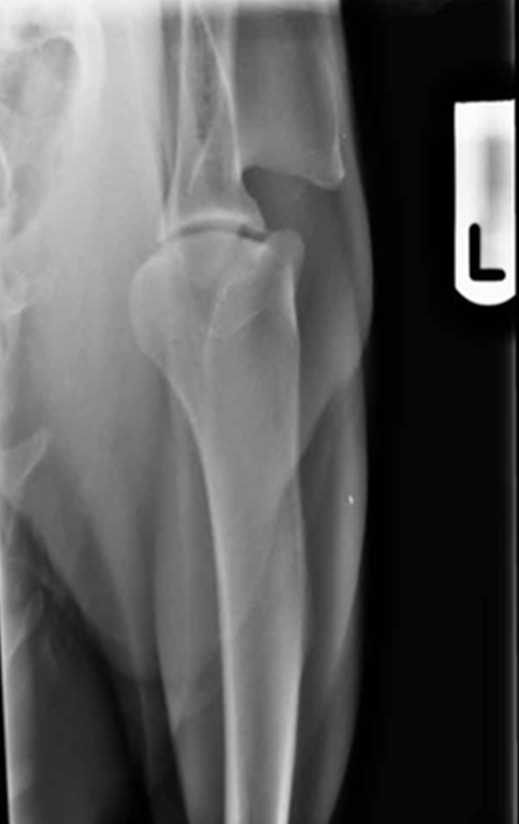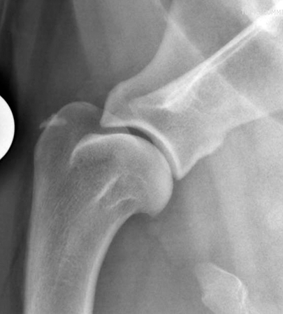 In a well positioned radiograph the joint space should be well visualised and there should be no overlying tissue