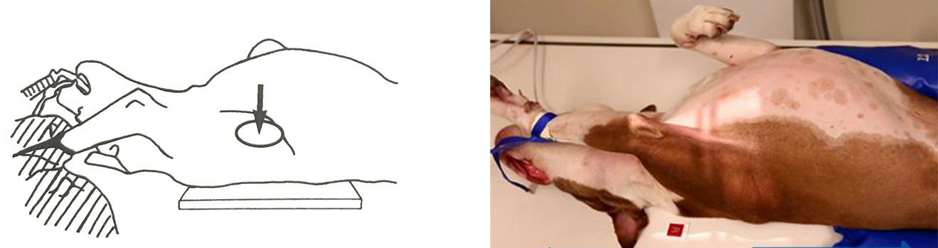 Place a foam pad under the chest to ensure the dog is parallel to the table and assist shoulder extension