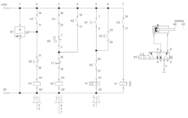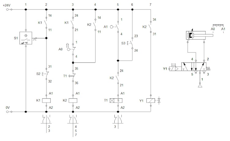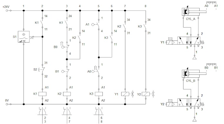 In circuit, what is the most probable fault in the system when the sequence is doing repetitive cycle of A+ then A-. Cylinder A extends right away as soon as it leaves A1.