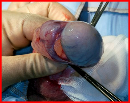 _______ _________ with torsion & swelling. Causes a back up of fluid in the epididymis & testis.