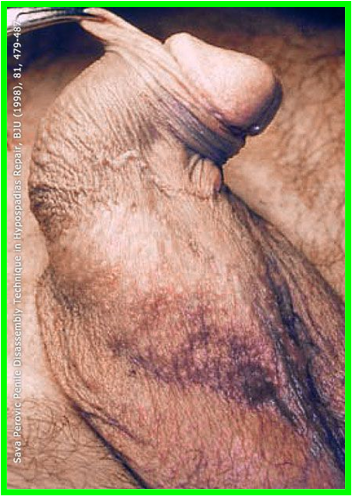 Failure of the dorsal mesenchyme of the shaft (genital tubercle) to properly fuse.