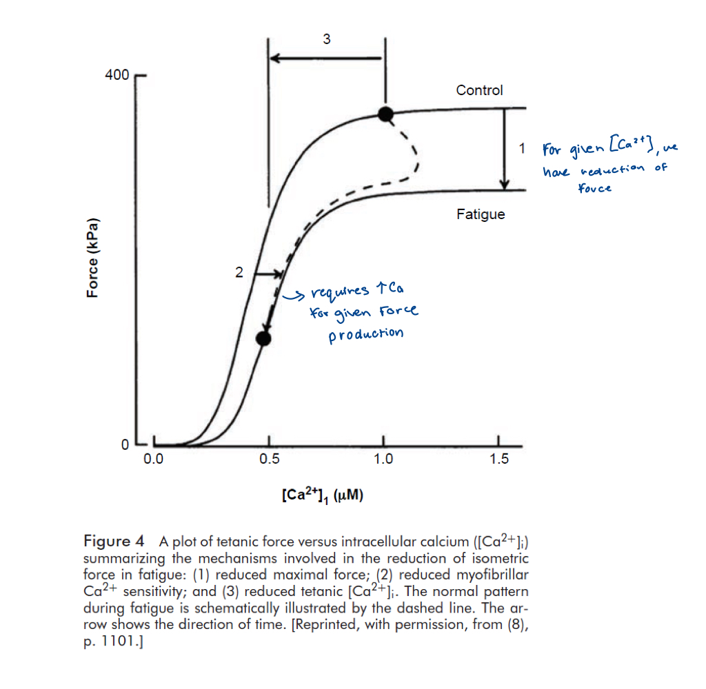 Fatigue can occur at all sites along the force production pathway (eg. from motor cortex, to neuromuscular junction, to sarcomere)