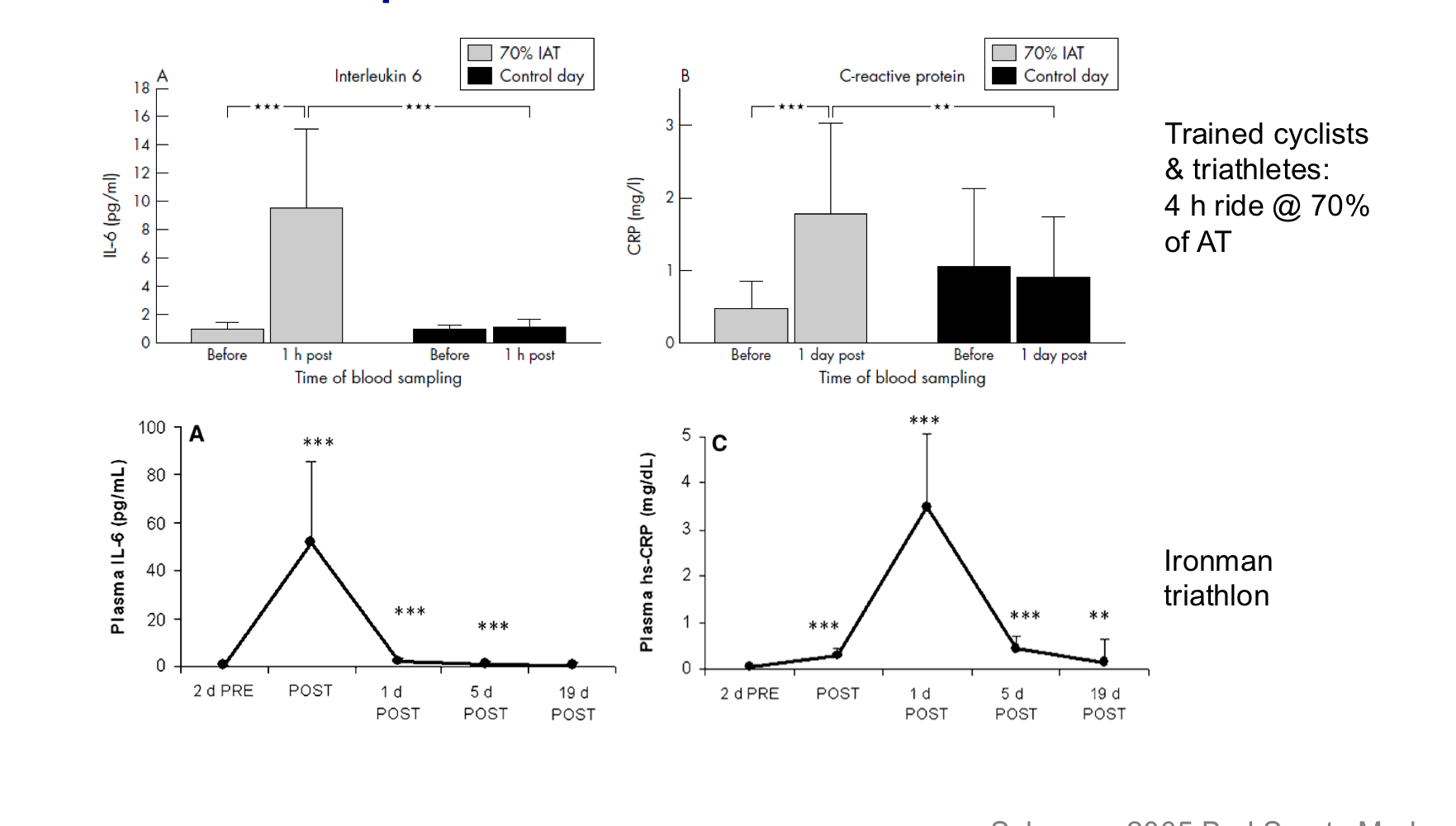Acute phase response in trained athletes following prolonged strenuous exercise