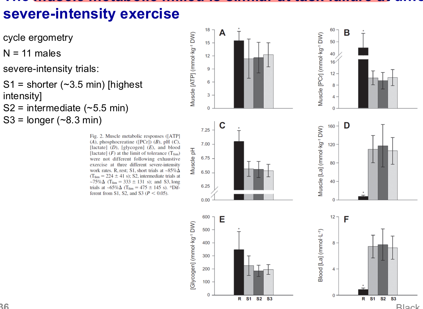 PCr drops as function of intensity, its depletion is a causal agent of fatigue, and happens very rapidly