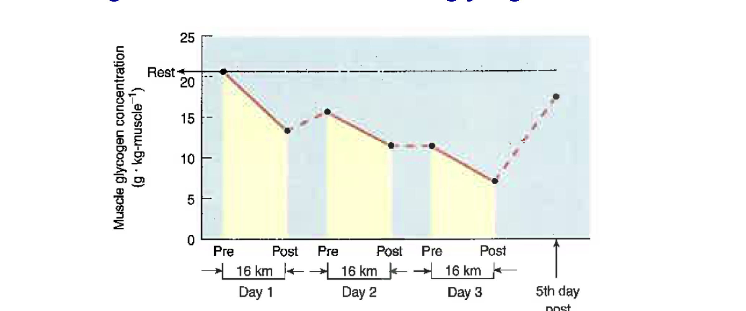 Mechanism of peripheral fatigue, substrate depletion of glycogen