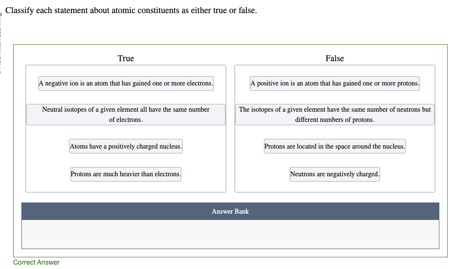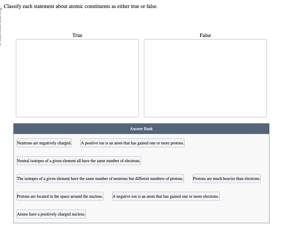 A negative ion has gained one or more electrons. A positive ion has lost one or more electrons. An atom will not gain or lose protons to become an ion, because the protons are located in the nucleus.