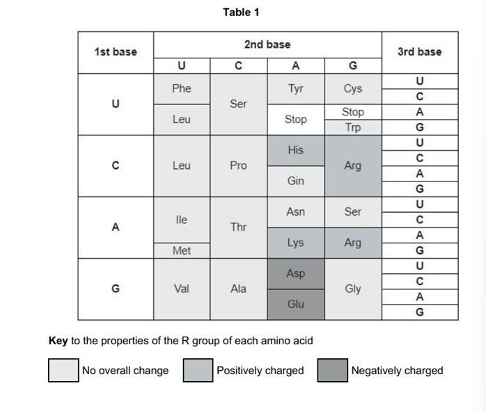 (Both) negatively charged to positively charged change in amino acid (1)