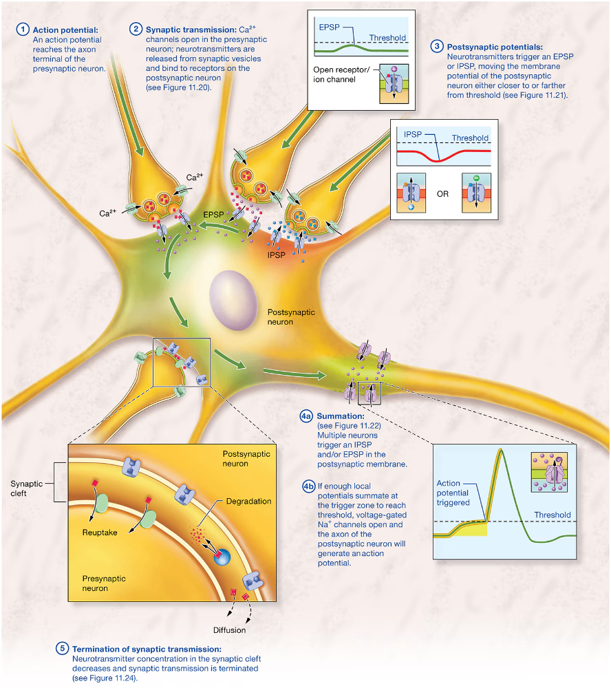 Neurotransmitters are released repeatedly from the axon terminal of a single presynaptic neuron