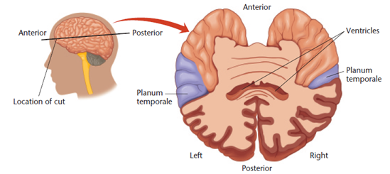 Waar is de planum temporale of Wernicke’s area bij betrokken? Wat zijn de verschillen tussen hemisferen?