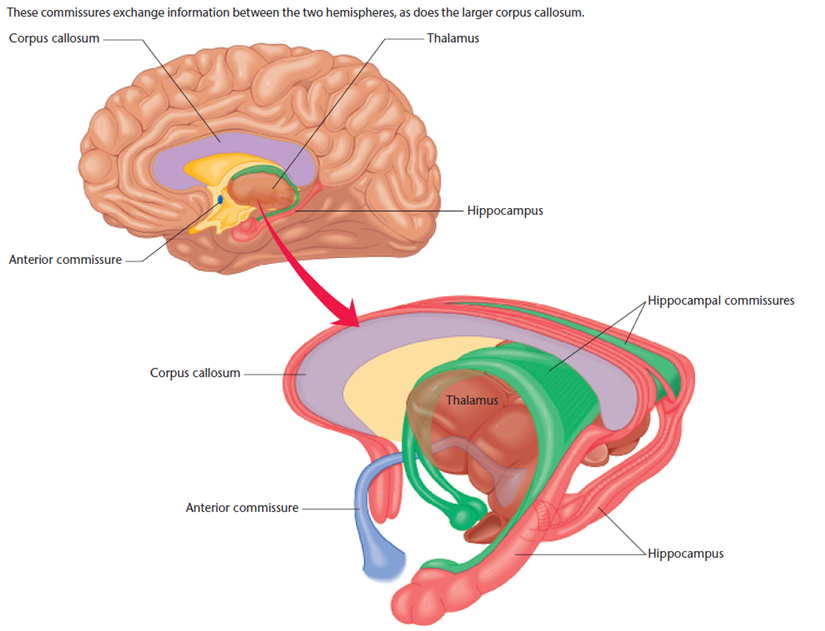 verbinden hemisferen, waardoor informatie uitwisseling tussen hemisferen mogelijk is
