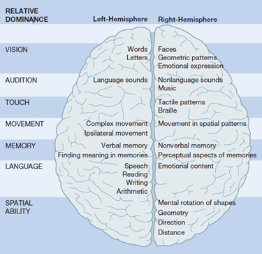 linkerhemisfeer speelt dominante rol in alle complexe gedrags- en cognitieve processen: