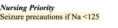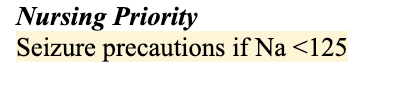an NA of 126 mWq/L is close enough to a seizure risk value. so in this serum level, seizure precautions needed to be started, since this is totally aligned with the SIADH diagnosis