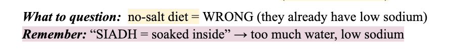 if a SIADH patient has low urine output for several days, it is a MEDICAL EMERGENCY because it causes cerebral edema. (this causes seizures, coma, and even death)