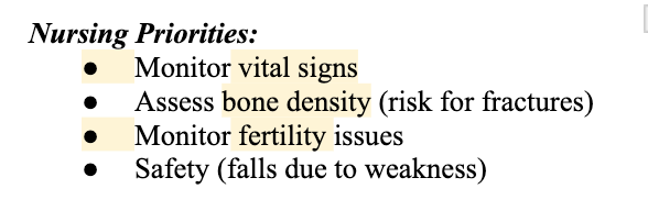 The nurse is planning care for a patient with hypopituitarism. What interventions would be a priority for this patient? Select all that apply.