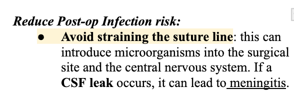(1) no lifting: is not important to be TAUGHT because it does not cause a DIRECT HARM TO INCREASING BRAIN PRESSURE
