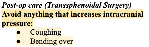 post-surgery MEDICATION TEACHING. this is accurate for a pharmacist because there are specific extreme side effects and changes that the family might need to look out for hyperpituitarism medication