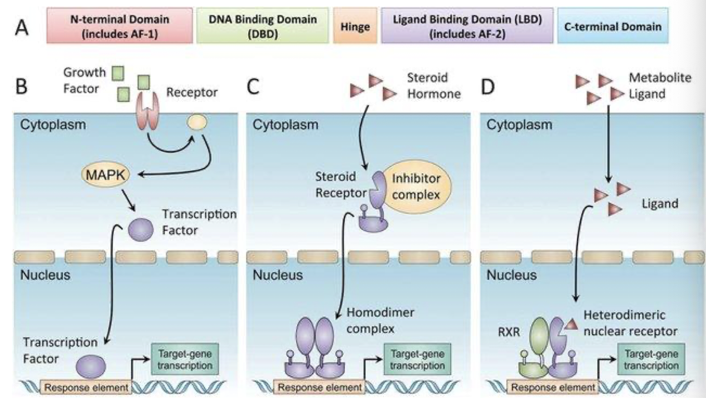 Examples include steroid hormone receptors e.g. estrogen, thyroid hormone receptors, and retinoic acid receptors.