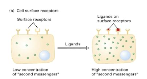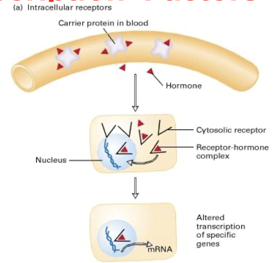 Hydrophilic - eg. peptide hormones such as insulin, growth factors, and glucagon