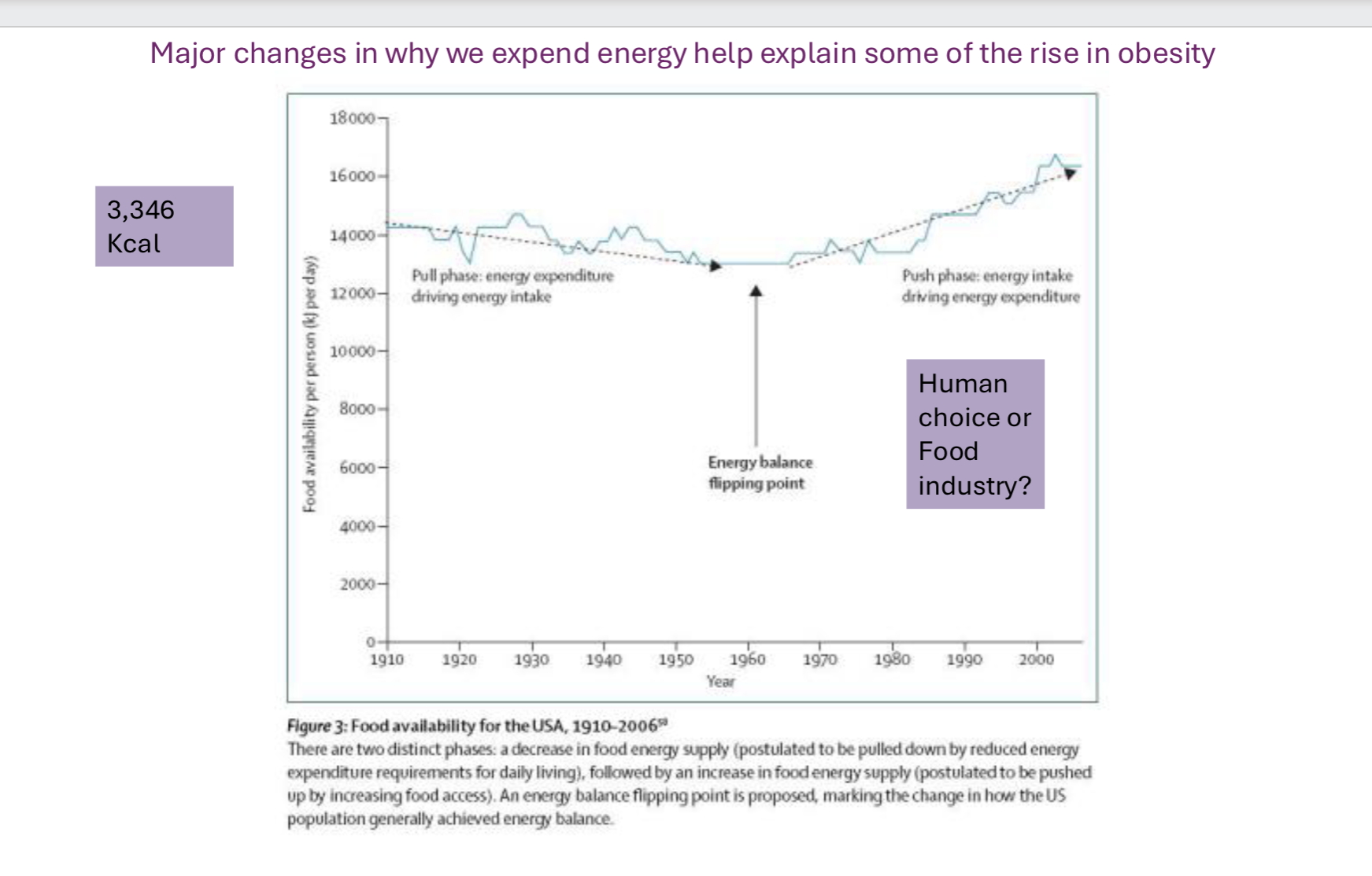 Increase food intake over energy expenditure yields weight gain