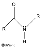 The nitrogen lone pair participates in resonance with the adjacent carbonyl, giving the peptide bond partial double bond character.
