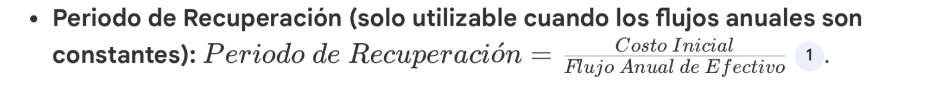 Periodo de recuperacion (solo utilizando cuando los flujos anuales son constantes)