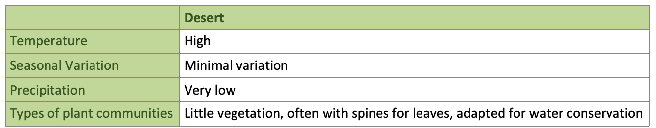 What are the temperature characteristics of a hot desert?