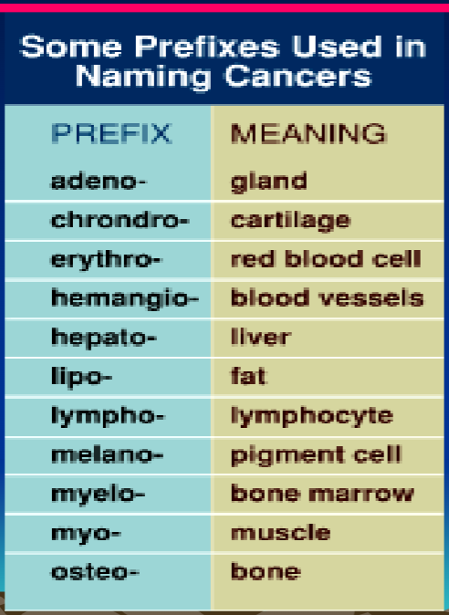 some prefixes used to naem cancers