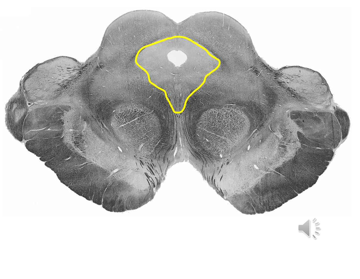 Yellow Periaqueductal gray in brainstem