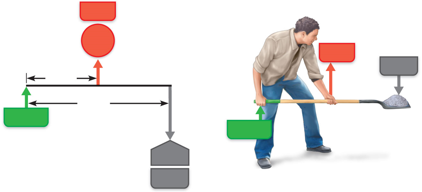 can be when you’re flexing your forearm by the biceps brachii muscle. The effort is exerted on the proximal radius of the forearm; the fulcrum is the elbow joint; and the load is the hand and distal end of the forearm.