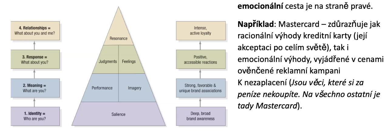 V modelu rezonance značky (pyramida) je akcentován racionální a emocionální vztah ke značce.