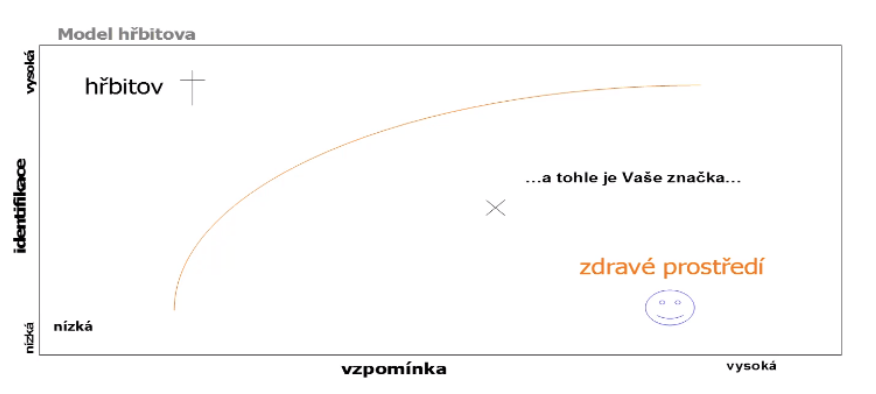 Model hřbitova představuje systém vztahů mezi spontánní a podpořenou znalostí značky.