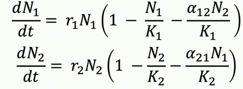 competition coefficient - per capita effect on one species by the other