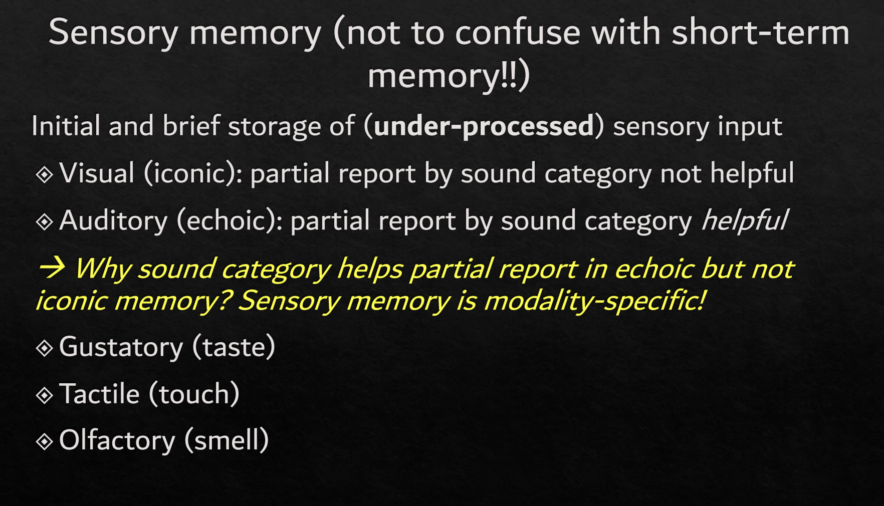 Types of sensory memory (by sense):